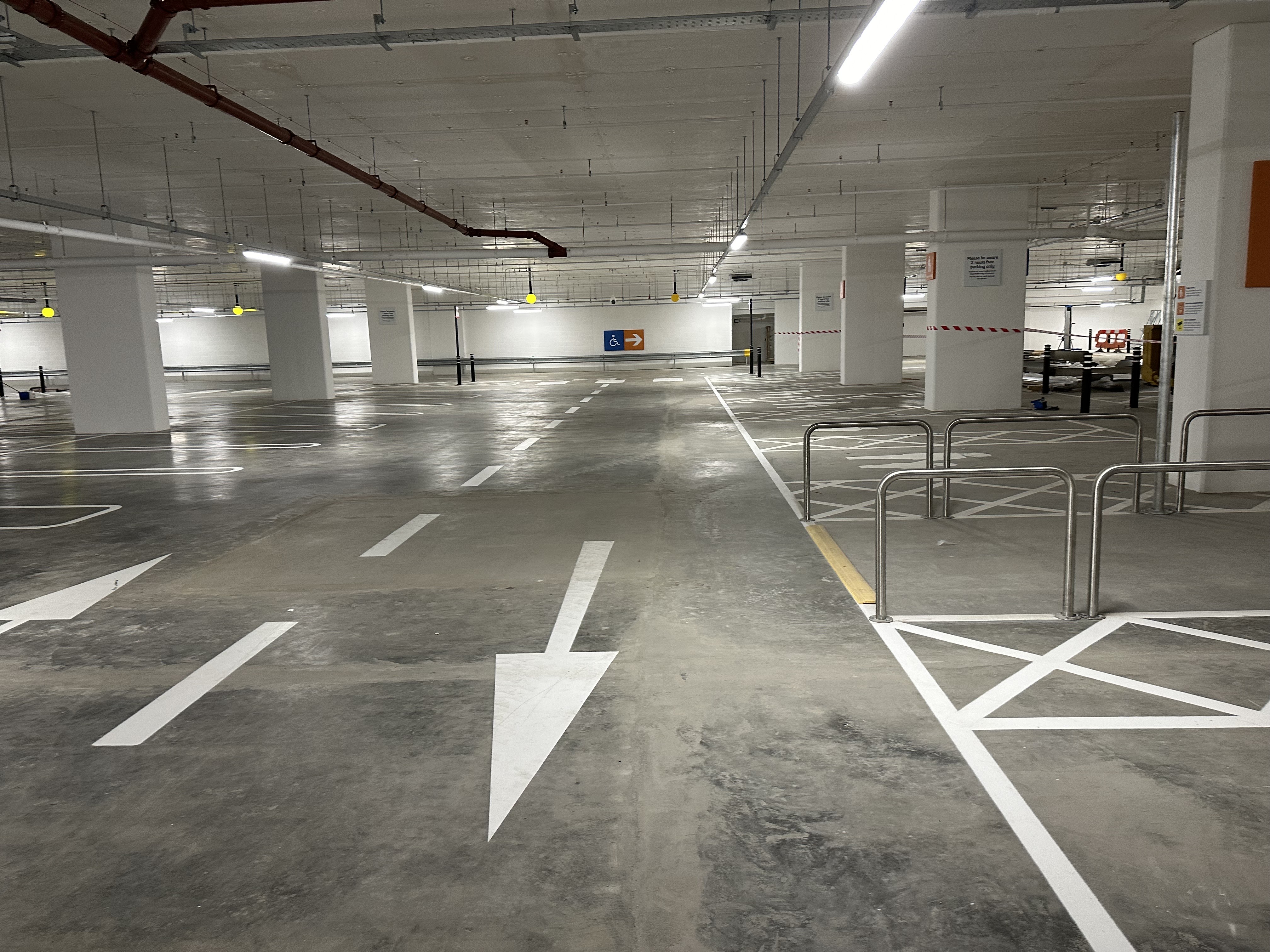 Applying durable markings on surfaces to enhance safety, organization, and navigation by clearly defining lanes, boundaries, and pathways.